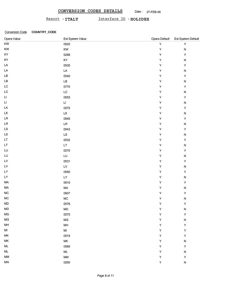 Welcome to OPERA Xchange Interface (OXI) > OXI_HUB > OXI_HUB Management Topics > Conversion Codes Topics - OXI_HUB > Conversion Codes Sample OXI