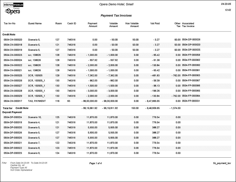 Note: The Interhotel VAT Amount column is available on the Payment Tax report when the OPP_MHT3 add-on license code is active. This column shows VATs attributed to cross-property posting.