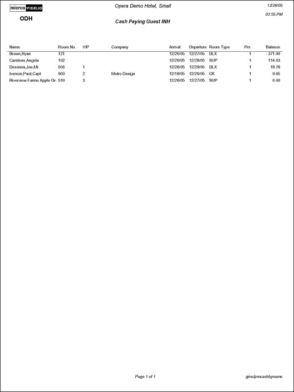 Cash Paying Guest INH (giinclpmcashbyname with GENREPPAR.FMX)