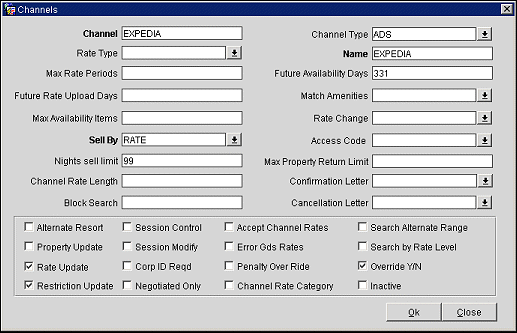 Note: For ADS channel types, only the Rate Update and Restriction Update check boxes should be selected.