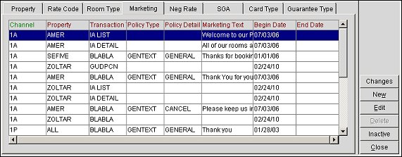 Note: You can select either a chain code or a property for the marketing text, but not both.