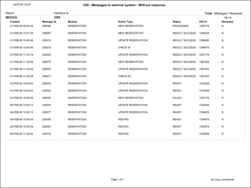 The OXI Message No Response Report provides data by module where messages to an external system have been sent, without having recieved back a response.