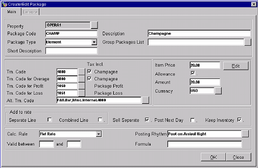 Allowance (Amount). This is the maximum allowance given to the guest for that package. OPERA will refer to both the item price and allowance when posting packages. The system will post a package loss when the consumed amount is larger than the item price but less than the allowance. Once the amount posted is greater than the allowance, then OPERA will charge the extra amount to the guest as an Overage.