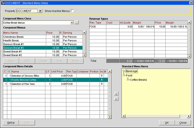 Multi-choice menu creation follows the same process as the normal composed menu creation. The differences will be mainly in the way the Order and Course are defined and in the calculation of the Revenue Types (cost, and item price).