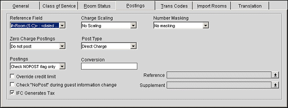 Override Credit Limit. This check box controls whether to allow an override of the credit limit on postings. When this check box is selected, a PostRequest that is over the credit limit will fail with No Credit response unless the payment method included in the PostRequest is configured to a Room posting type that is associated with the Manager Override (see IFC Trans Codes Tab for details).
